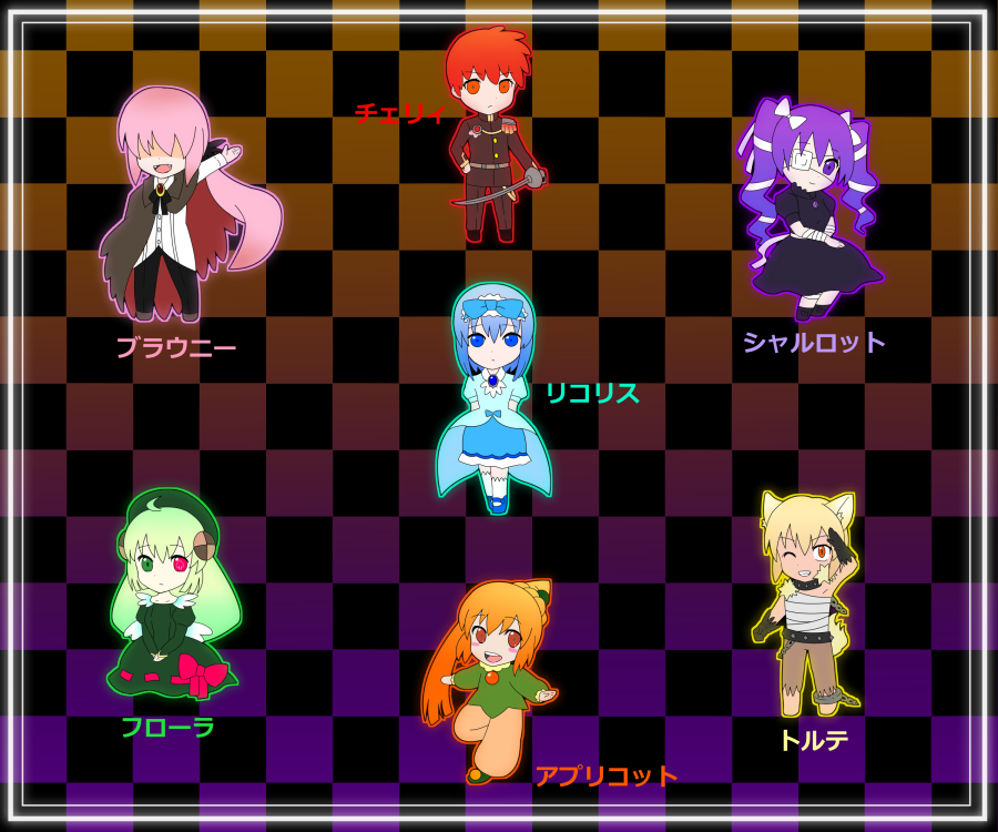PV完成! お知らせ 2012年09月04日 「PVが出来ましたー!」 とかいきなり言われてもって感じでしょうが…… 文章で説明するより、見てもらったほうがストーリーとかを理解しやすいかなーと思います。 とりあえず、こんな感じのものを作りたいのよっていう雰囲気を組み立ててみた感じです。 こんな感じのものを作りたいんですよ。 PVを見てやる (※別窓で開きます) 素敵な素材を提供してくださった各種素材提供者さまには頭が上がりません。 本当にありがとうございます(とか、ここで言ってみても仕方ないんだけど) 完成したらきちんとお礼に行こうと思っております。 以下、PVで使用したイラストを何枚か。(画像クリックで拡大します) ブラウニー:彼はハロウィンの支配者という設定です。 ハロウィンという世界を構築したのも彼であり、彼の目的はハロウィンという世界を守ることです。 まぜのべで指摘してくださった方がいらっしゃいましたが、”彼”ですよ。 女の子には見えないと思ったんだけどなぁ…… リコリス:プレイヤーはこの子の視点から物事を見、体験することとなります。 ゆえに影は薄いです。 他のキャラには皆一応はっきりとしたハロウィンコスプレのモデルがあるのですが(ex.ブラウニー=ドラキュラ)、 この子は漠然と「不思議の国のアリス」っぽい感じ?と決めただけでした(しかもぽい感じになってない) しかし本物のお菓子素材はいいですね!なんてったって本物ですから、おいしそうですね! 多分今回一番気に入ってるのはこの子です:チェリィくん。 男の子でチェリィくんとか可哀想だよねーって2つの意味で思う、2つの意味で。 だから作中ではそのことをねちねちいじってやる予定です。 (意味が分からないからってお母さんに聞いちゃだめだよ!) チェリーではなく、チェリィです。私の最低限の思いやりです。 でも作中ではしばしばチェリーと呼ばれてしまいます。 キャラクターとか世界観とかも少しずつ紹介していきたいですが、 とりあえずPV報告ができたので……今日はここいらで失礼します。 あ、ブログの素敵テンプレの提供者さまにも感謝です。 ハロウィンデザインでもそんなにごてごてぎらぎらしてなくて好きです。